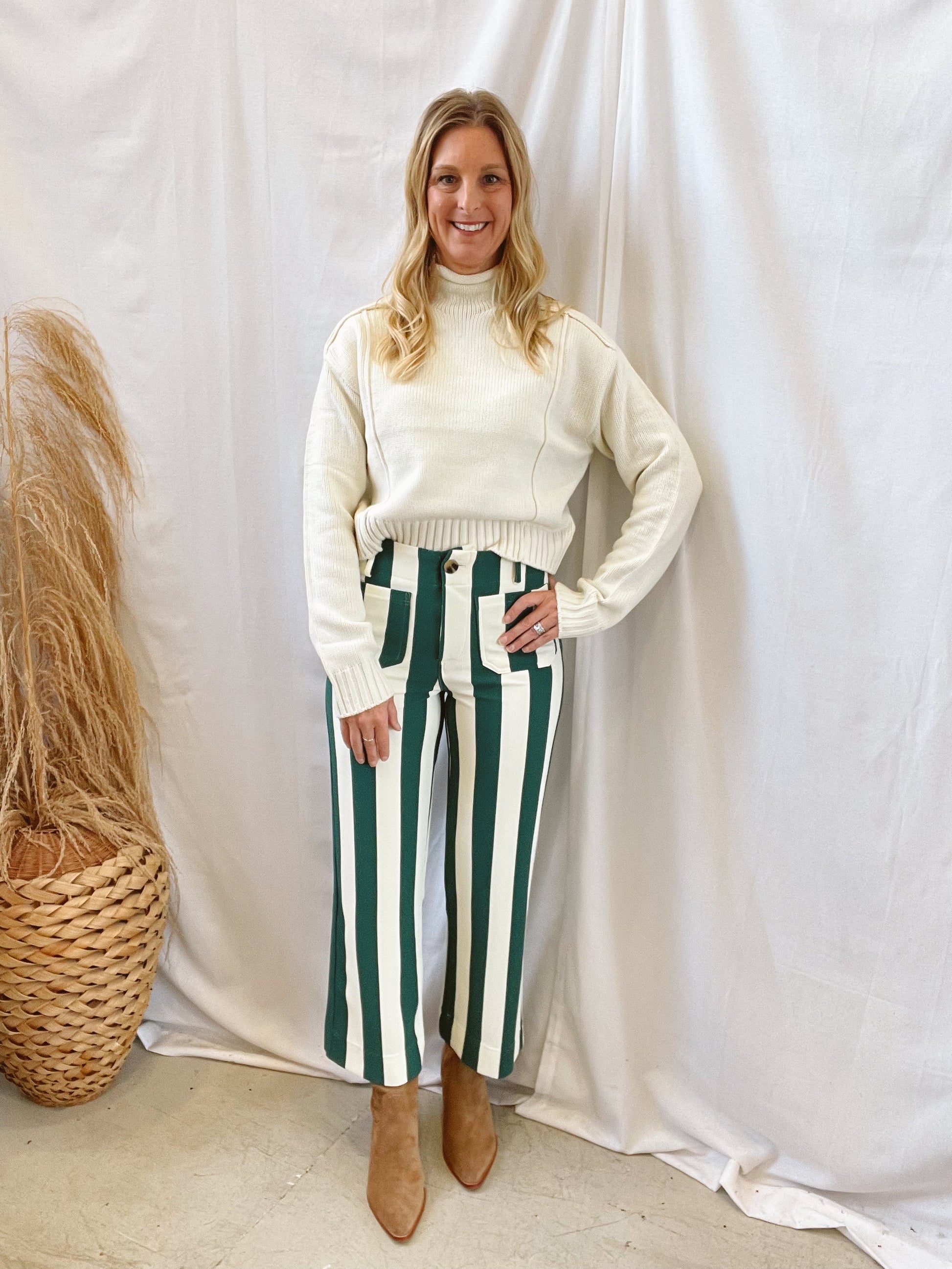 Step out with confidence in these Green and Cream Crop Pants—where comfort meets cool in a playful twist. The wide-leg cut gives you room to move and groove, while the cropped length adds a flirty touch. Perfect for mixing and matching, these pants bring a stylish edge to your everyday wardrobe.